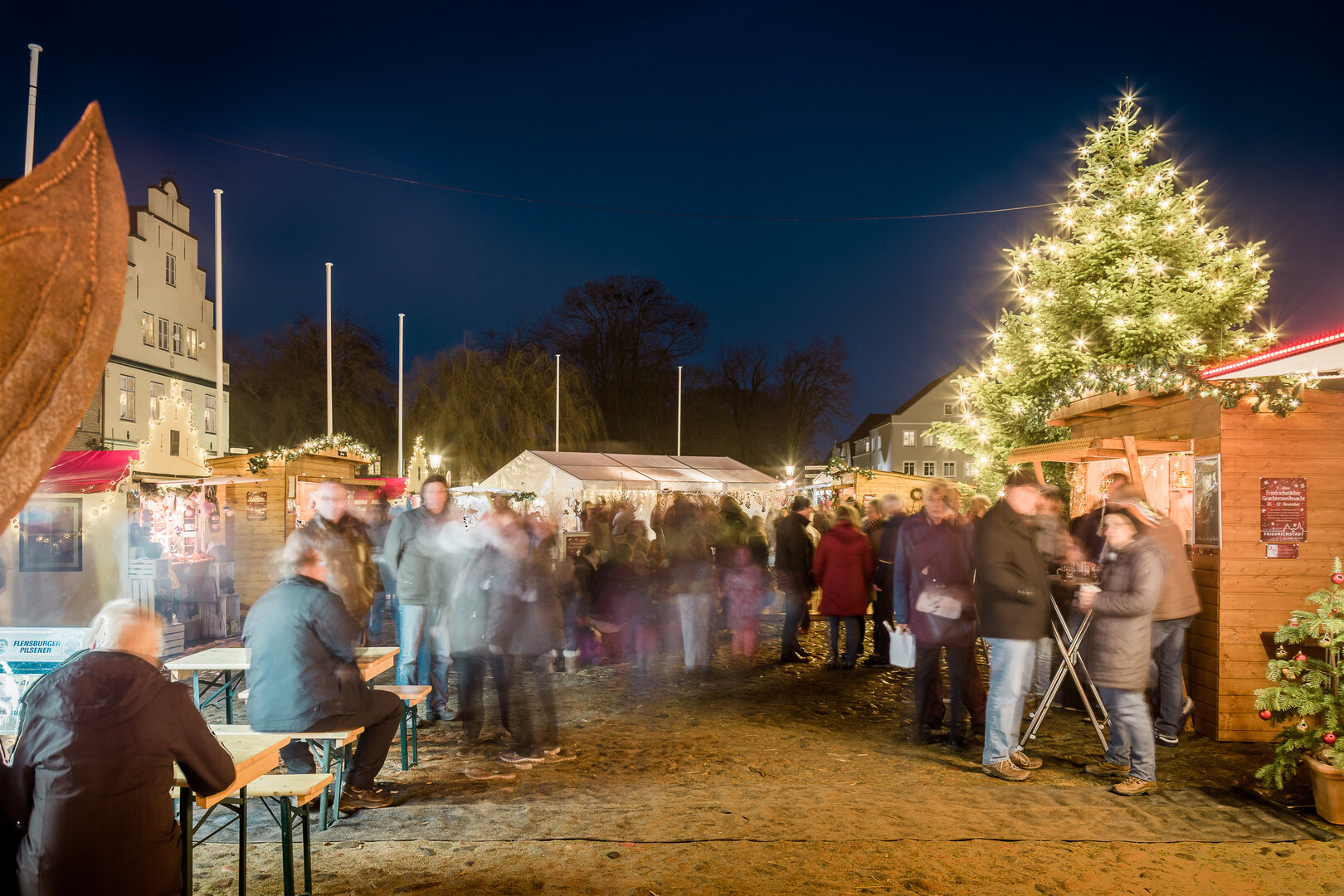 Im Advent wird es bei uns in Friedrichstadt sehr romantisch Im Advent wird es bei uns in Friedrichstadt sehr romantisch. Unser kleiner gemütlicher Weihnachtsmarkt auf dem Marktplatz lockt mit kleinen Holzhütten, aus denen weihnachtliche Dekoration, Bastel- und Handarbeiten und Leckereien aus den heimischen Werkstätten und Küchen angeboten werden. Vorweihnachtliches Glück finden sich hier in allen Winkeln und Ecken rund um den festlich geschmückten und hell erstrahlenden Tannenbaum.