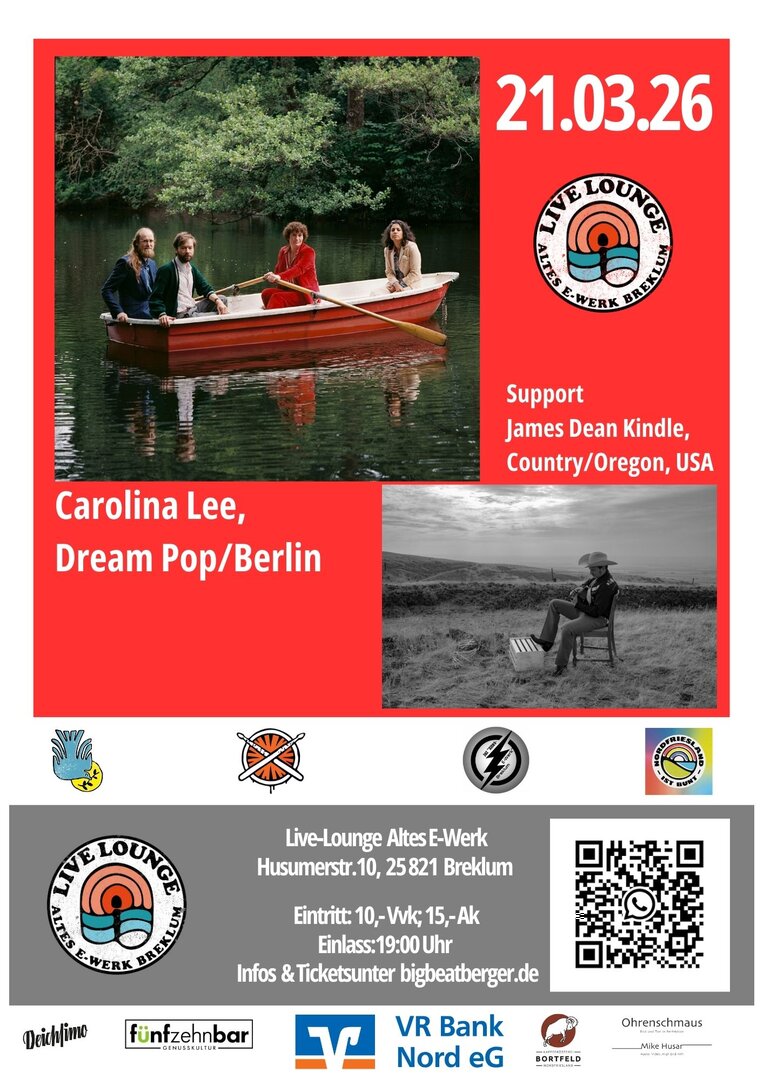 Konzert mit Carolina Lee - Dream Pop/Berlin, Support James Dean Kindle - Country/USA