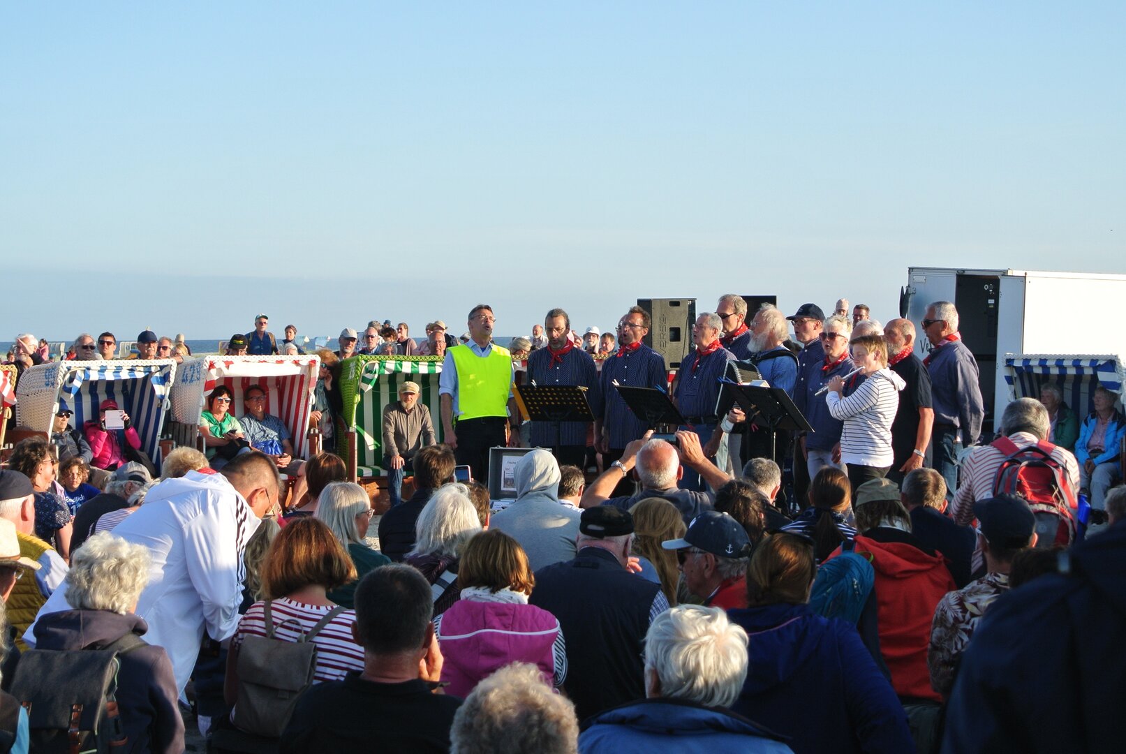 mit der Amrumer Trachtengruppe, der Amrumer Blaskapelle und dem Amrumer Shantychor, anschließend Feuer am Strand, für das leibliche Wohl sorgen die Freiwilligen Feuerwehren der Insel (Eintritt frei, die Strandzugwegung "Strunwai" wird für den Autoverkehr gesperrt, nur gehbehinderte Personen und Akteure dürfen durchfahren, bitte nutzen Sie den Bus, das Fahrrad oder gehen Sie zu Fuß)