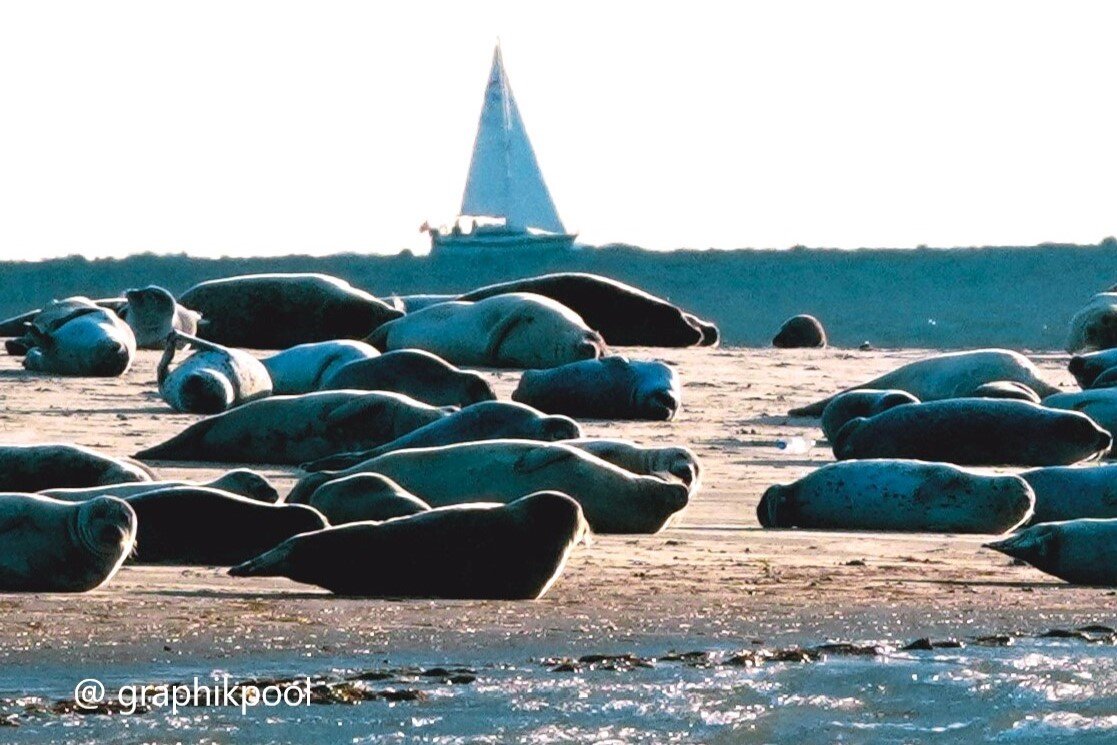 Festes Sandwatt, ideal für Muschelsammler und Entdecker.Fast immer sind Seehunde zu betrachten. Fernglas mitnehmen!
